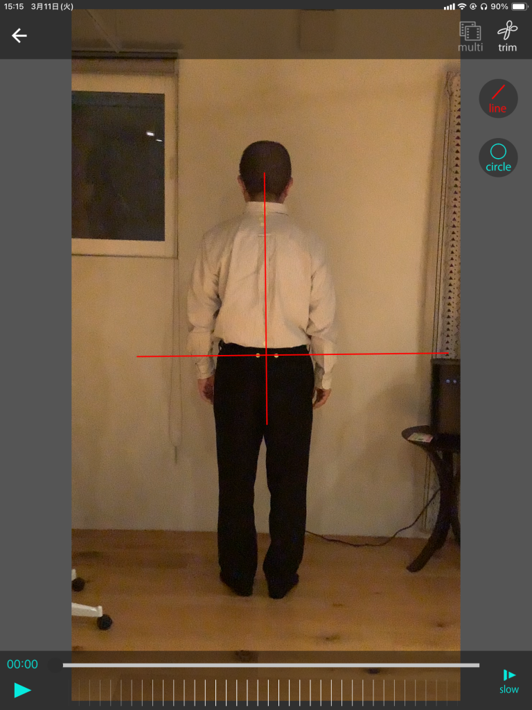 ・骨盤が水平になり、背骨全体の負担が取れているのが分かる