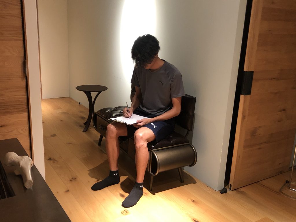 初めに、現在の体の状態やお悩みを詳しく伺うため、簡単なシートをご記入いただきます。